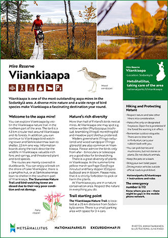 Viiankiaapa is one of the most outstanding aapa mires in the Sodankylä area. A diverse mire nature and a wide range of bird species make Viiankiaapa a fascinating destination year round.