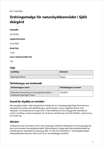 Ordningsstadga för naturskyddsområdet i Själö skärgård