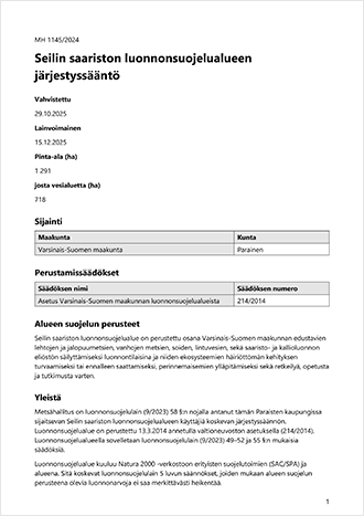 Seilin saariston luonnonsuojelualueen järjestyssääntö